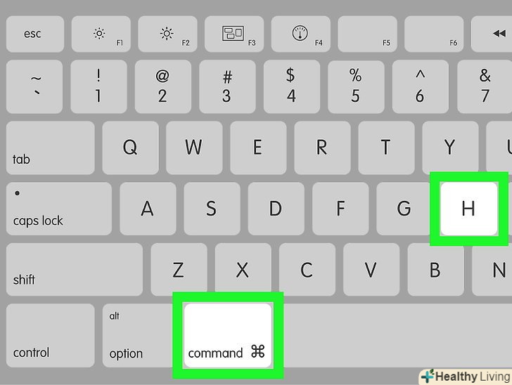 Натисніть⌘ CMD+H, щоб приховати активне вікно.приховане вікно створить враження, що воно закрито, навіть якщо ви не закрили програму. Щоб знову відобразити приховане вікно, клацніть по значку програми.- Щоб приховати всі вікна, натисніть⌘ Cmd+⌥ Option+H.