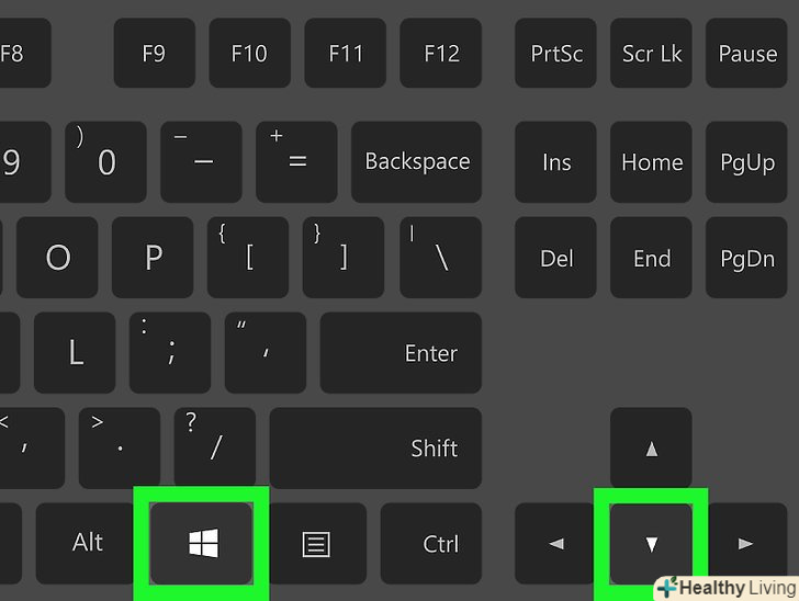 Натисніть⊞ win+↓, щоб згорнути активне вікно. одночасне натискання клавіші "Windows" і клавіші з спрямованою вниз стрілкою призведе до згортання (але не закриття) активного ВІКНА.- Щоб розгорнути згорнуте вікно, клацніть по ньому на панелі завдань, яка знаходиться внизу екрану.