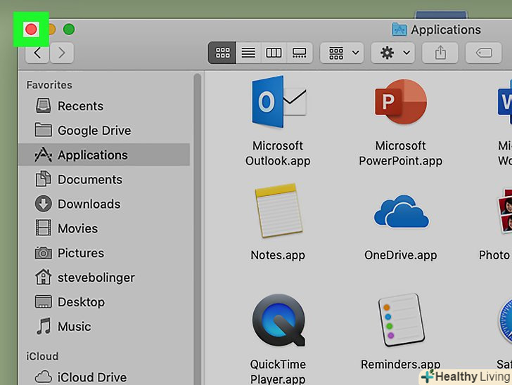 Клацніть по значку у вигляді червоного гуртка у верхньому лівому кутку вікна, щоб закрити його.якщо в активному вікні відкрито документ, програма запропонує вам зберегти його.- Якщо у вас немає миші або ви віддаєте перевагу користуватися комбінаціями клавіш, натисніть⌘ Cmd+Q, щоб закрити активне вікно.[2]