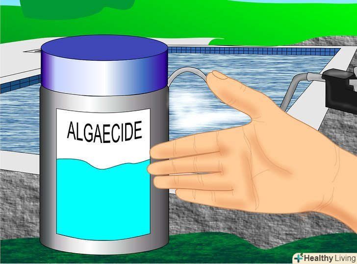Додайте альгіцид, оскільки чорні водорості дуже стійкі до хлору. вам потрібно додати альгіцид у воду, щоб атакувати з іншого боку. Альгіциди спеціально розроблені, щоб знищити і запобігти водорості. Так що хороша ідея - щоб альгіцид був у воді завжди. Якщо ви ще не налили альгіцид в воду, краще налийте його відразу ж. Знайдіть альгіцид на основі міді, оскільки він, як правило, найкращий для використання. Налийте альгіцид безпосередньо на уражені ділянки.