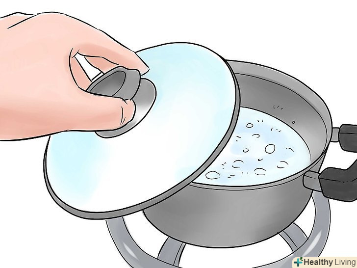 Кип'ятіть воду перед тим, як її пити. Кип'ячену воду можна також використовувати для прибирання кухні та ванної кімнати, для чищення зубів, вмивання і миття голови, щоб збільшити ефективність миючих засобів.- Після того, як вода покипить кілька хвилин, дайте їй охолонути. Видимі неозброєним оком частинки будуть утворюватися на поверхні води. Зніміть верхній шар кип'яченої води і викиньте його перед тим, як будете пити воду.