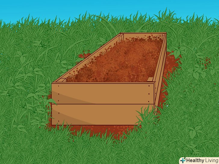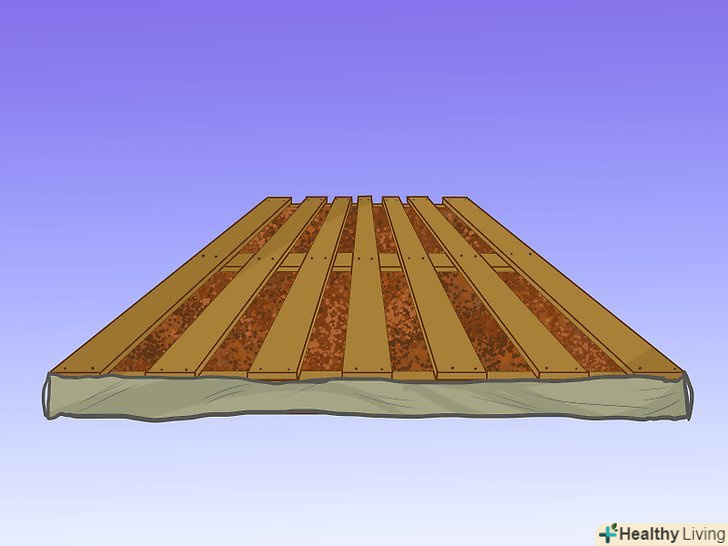 Позбавтеся від будь-яких бур'янів і закрийте краї піддону. в ідеалі, ви повинні почати з видалення бур'янів, під вашою грядкою. Спробуйте хімічні препарати, або покладіть трохи газет або картону.- Вам потрібно закрити всі краї піддону, щоб запобігти появі бур'янів.