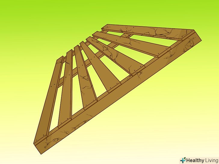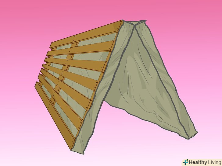 Використовуйте піддони, щоб зробити решітку для витких рослин. візьміть 2 піддони і поставте їх навпроти один одного в V-подібній формі. Відстань між ними має бути близько 45 см.- Забийте дві дерев'яні палиці, щоб утримувати їх на місці у формі намету. Покладіть мішечок для рослин біля основи кожного піддону і вирощуйте там такі в'юнкі рослини, як огірки, квасоля і гарбуз.