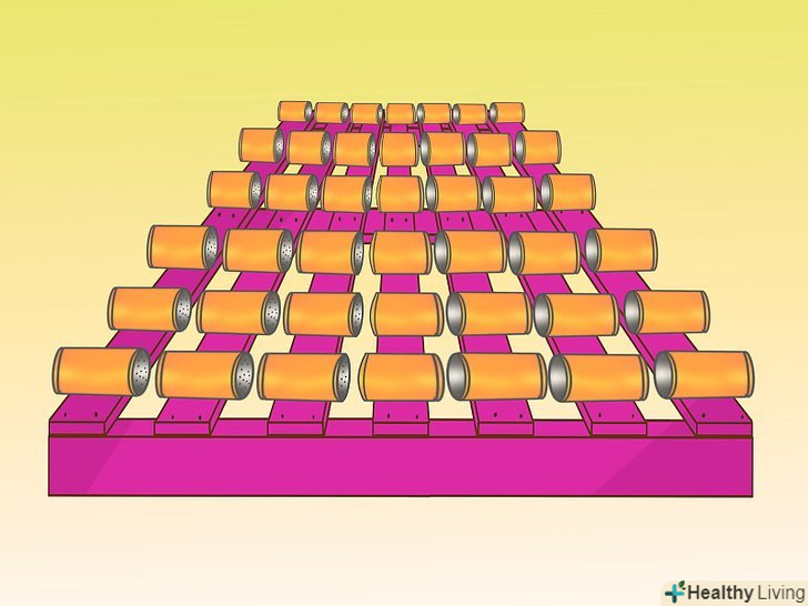 Причепіть банки до піддону, коли рослини будуть всередині них. коли будете прибивати банки до піддону, остерігайтеся будь-яких гострих країв (можна сточити їх). Потім, перед наповненням грунтом і висадкою рослин покладіть 5 см глини або гравію на дно банок.