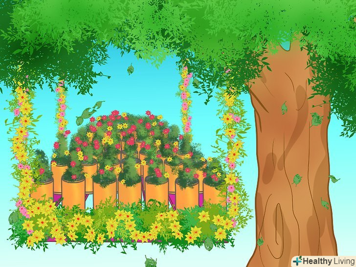 Вирішіть, як ви хочете поставити ваш піддонний сад. ці піддонні сади виглядають найкраще, якщо їх притулити до паркану або стіни, а не лежачи на землі.- В якості альтернативи можна повісити свій піддонний сад на ланцюзі, щоб підняти його вертикально над землею.