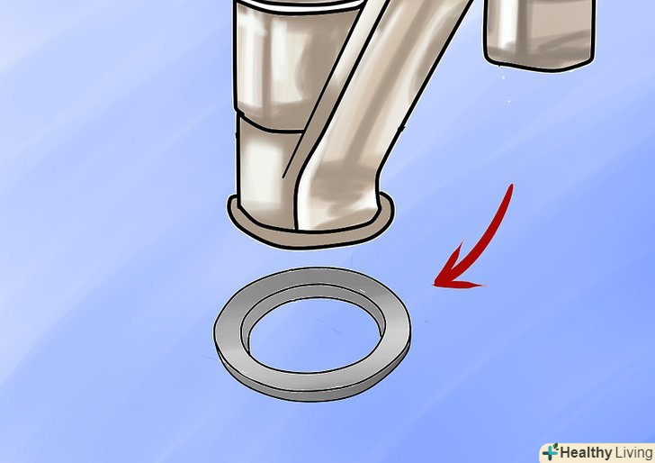 Перевірте основу вашого нового змішувача на наявність пластмасового ущільнювача. Вам буде необхідно щось на зразок даного ущільнювача, для того, щоб вода не просочувалася під змішувач, якщо дана прокладка відсутня, то купите сантехнічну замазку. Вона буває сірого кольору, схожа на жуйку. Перед тим як кріпити змішувач, намажте трохи цієї замазки по колу його підстави. Після того як ви затягніть гайки, невелика кількість замазки видавиться назовні, але її легко буде відчистити засобом на спиртовій основі.