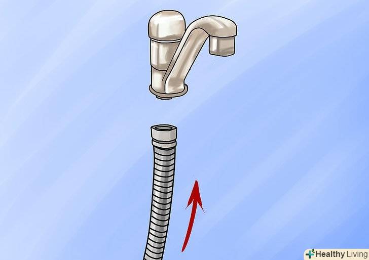 Від'єднайте гнучкі шланги від вентилів, якими змішувач приєднується до них. у цей момент вода з змішувача почне стікати по шлангах на підлогу, для цього візьміть якийсь рушник, щоб зібрати всю воду.- При заміні змішувача не завадить замінити і лінії подачі води, якщо вони звичайно вже зносилися, особливо якщо вони гнучкого типу. У разі, якщо ваша система подачі води складається зі звичайних твердих труб, то в заміні немає необхідності. Якщо ви не міняєте труби, то просто перекрийте воду. Плетений шланг з посиленої нержавіючої сталі практично виключає ймовірність потопу з місця розриву.