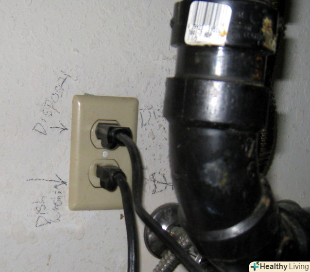 Щоб прибрати накопичився сміття, вимкніть посудомийку від електромережі. під раковиною пошукайте розетку. Переконайтеся, що ви відключили саме посудомийку, а не утилізатор сміття! Щоб бути впевненим-пройдіть по шнуру до Посудомийки.- Якщо у вас не вбудована посудомийка, відсуньте її, щоб знайти шнур.