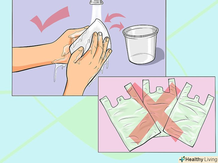 Знайдіть спосіб не викидати предмети, а повторно використовувати їх. наприклад, мийте і повторно використовуйте пластикову тару, замість того, щоб користуватися пластиковими мішечками, а потім викидати їх у відро для сміття.
