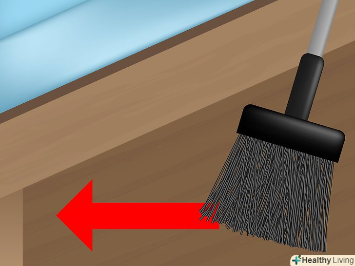Підніміть все, що залишилося на підлозі. або, змітайте це все під ліжко за допомогою ваших ніг або мітли. Ви зможете привести це в порядок пізніше. На цьому етапі, Це ваш кращий варіант.- Витрусіть килимок або скиньте з нього весь мотлох. Якщо він весь в плямах це краще, ніж ще й сповнений мотлоху.