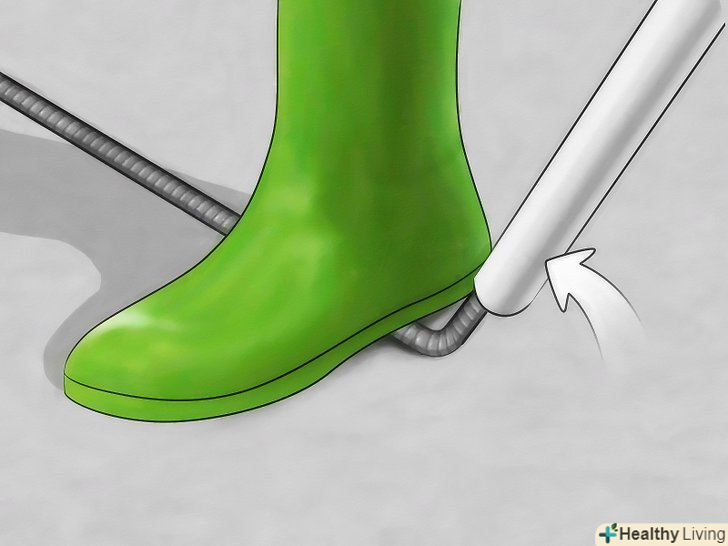 Згинання арматури з умовним діаметром 1/2 дюйма (15 мм) і менше. Тепер, коли у вас є відрізаний по довжині стрижень, прийшов час зігнути його. Гнучка арматури полягає в підборі величини плеча важеля. Покладіть арматуру на землю. Використовуючи довгу металеву трубу з досить великим внутрішнім діаметром, помістіть стрижень арматури в трубу, зупинивши її приблизно в 15 см від місця, де ви хотіли ви почати вигин. Поставте ногу на відстані 15-30 см від місця, де ви хотіли б отримати вигин. Твердо наступивши ногою, піднімайте арматуру з землі, поки вона не зігнеться на потрібний вам кут. Часто,якщо ви намагаєтеся отримати точний вигин, потрібно згинати стрижень потроху в кілька підходів.