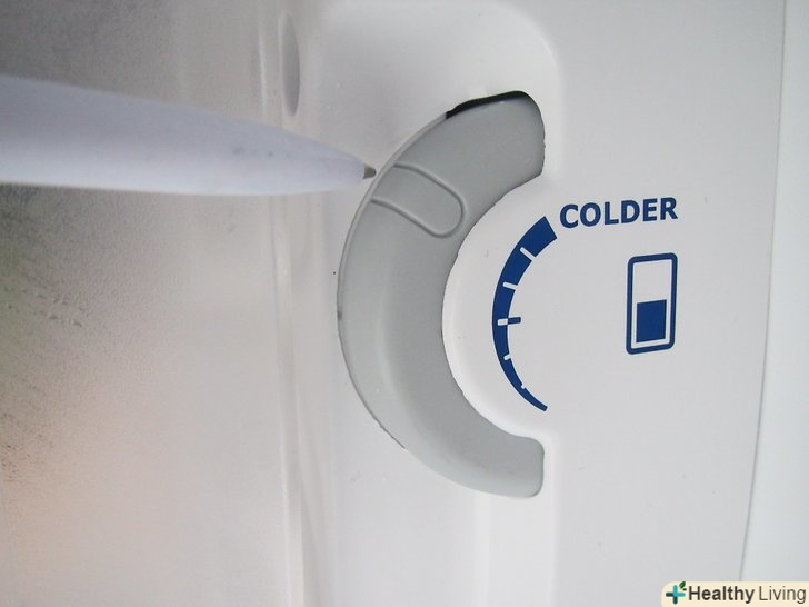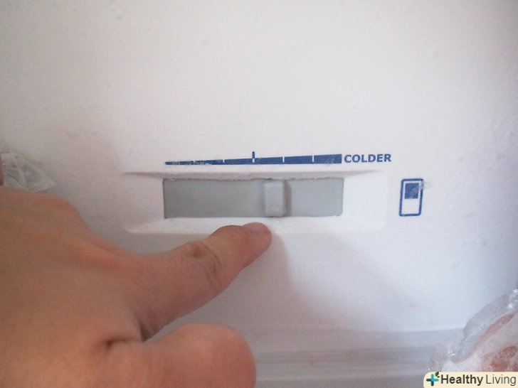За допомогою регулятора або перемикача температури налаштуйте температуру всередині холодильника. виконуйте невеликі, поступові коригування температури, не потрібно міняти її різко. Якщо ви не можете знайти регулятор або думаєте, що ваш холодильник використовує іншу систему для налаштування температури, вам слід звіритися з керівництвом користувача.