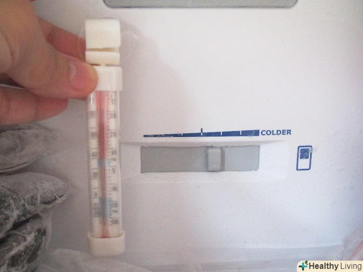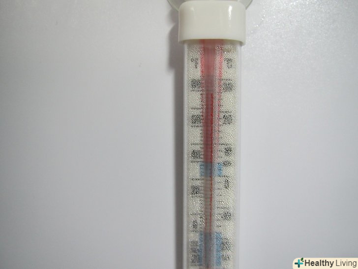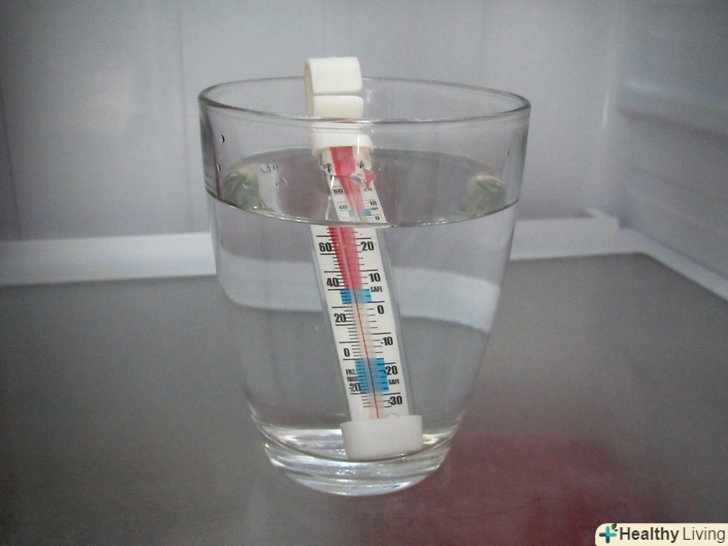 Через 5-8 годин перевірте температуру на термометрі. для безпечного зберігання продуктів температура всередині повинні бути від 2 до 4 градусів Цельсія.- Переконайтеся, що куплений Вами термометр можна класти в воду, не всі термометри на таке розраховані.