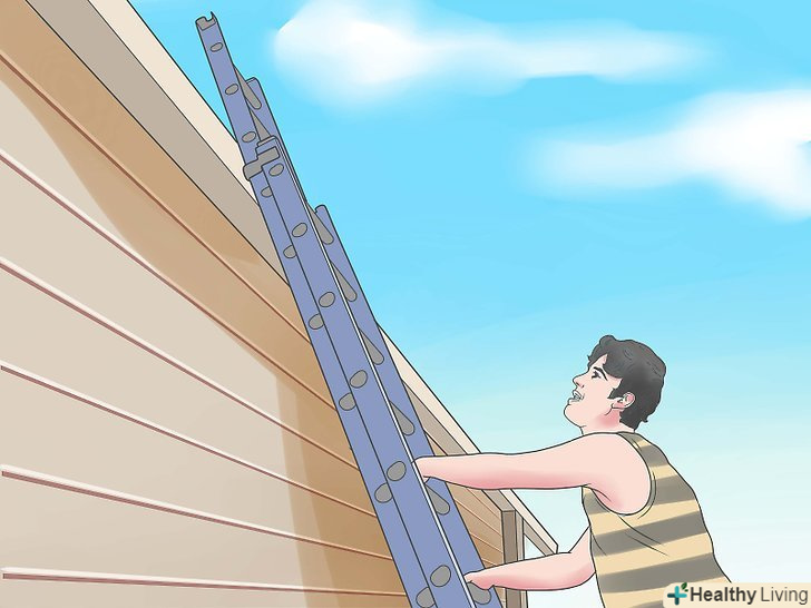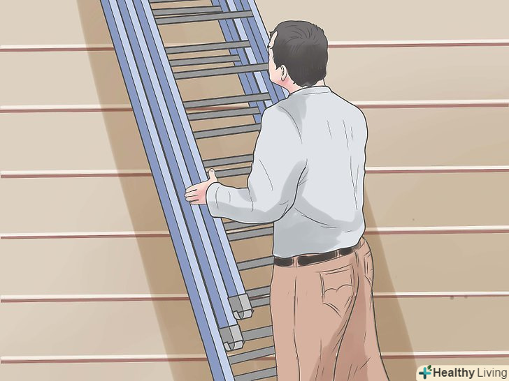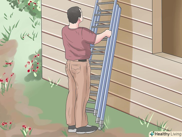 Зафіксуйте підставу драбини таким чином, щоб сходи не могла рухатися, інакше вона може впасти. Якщо ви розкладаєте драбину самостійно, то необхідно встановити безпечний упор підстави сходів. Якщо ви намагаєтеся дістати до водостоку даху будинку, то необхідно зафіксувати низ драбини недалеко від фундаменту будинку. Якщо ви піднімаєте драбину з помічником, то йому буде необхідно підперти ногою підставу драбини на землі.
