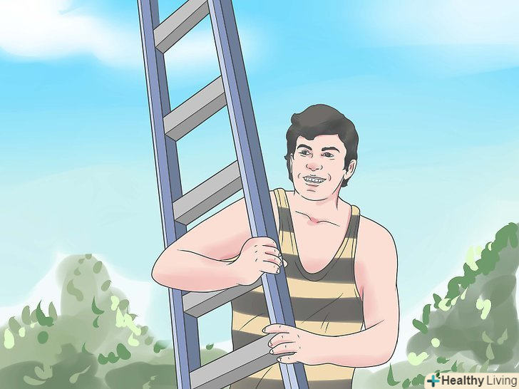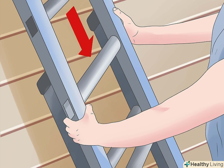 - Відцентруйте ваше тіло по центру драбини і залазьте на драбину обличчям до неї.