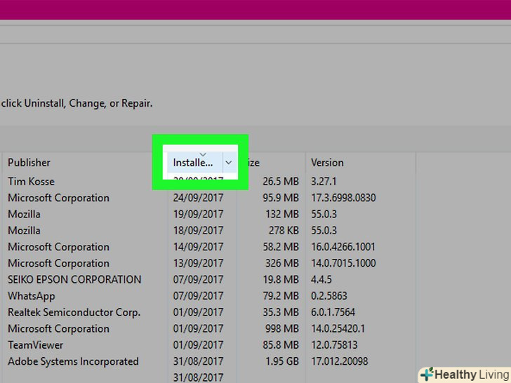 Клацніть по стовпцю «встановлено», щоб відсортувати програми за датою установки.зробіть це, щоб знайти нещодавно встановлене програмне забезпечення.