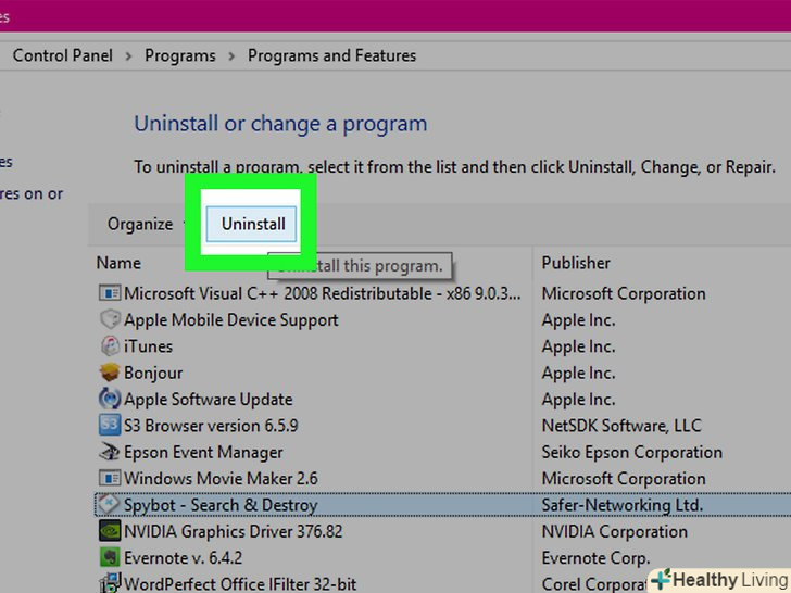 Виберіть невідому вам програму і натисніть "Видалити".якщо ви не впевнені, для чого призначена програма, пошукайте інформацію про неї в Інтернеті. Повторіть описаний процес з будь-якою незнайомою програмою.