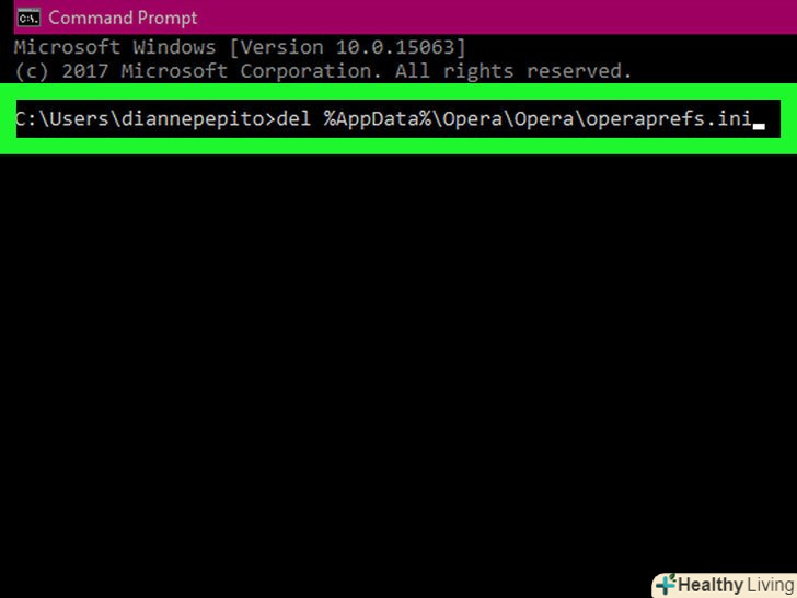 - Введітьdel %AppData%\Opera\Opera\operaprefs.ini і натисніть ↵ Enter. Налаштування Opera будуть скинуті до налаштувань за замовчуванням.