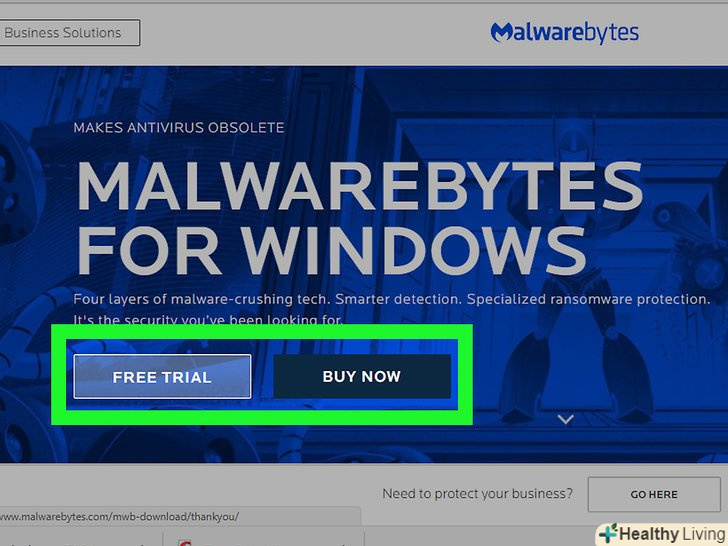 Завантажте та запустіть Malwarebytes Antimalware. безкоштовна версія цієї програми просканує комп'ютер і знайде шкідливі програми, пропущені AdwCleaner.[1]- Завантажте та встановіть Antimalware з сайтуmalwarebytes.org.