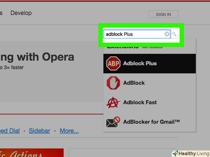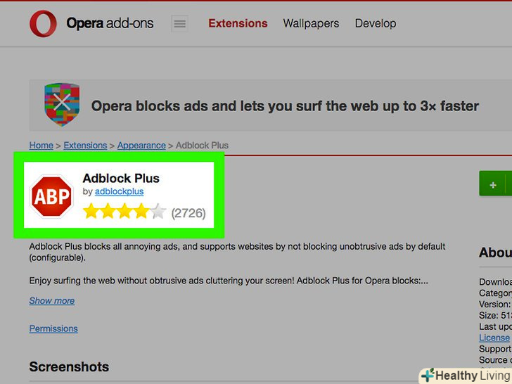 Відкрийте меню "Opera" і виберіть "Завантажити розширення".відкриється нова вкладка. За замовчуванням Opera блокує деякі спливаючі вікна. Обнако якщо ви встановите розширення, воно буде блокувати всі рекламні оголошення.- Заблокувати рекламу в мобільній версії Opera трохи складніше. Вам доведеться встановити додаток Adblock Plus і налаштувати параметри мережі. Прочитайте цю статтю, щоб дізнатися, як встановити цей додаток.