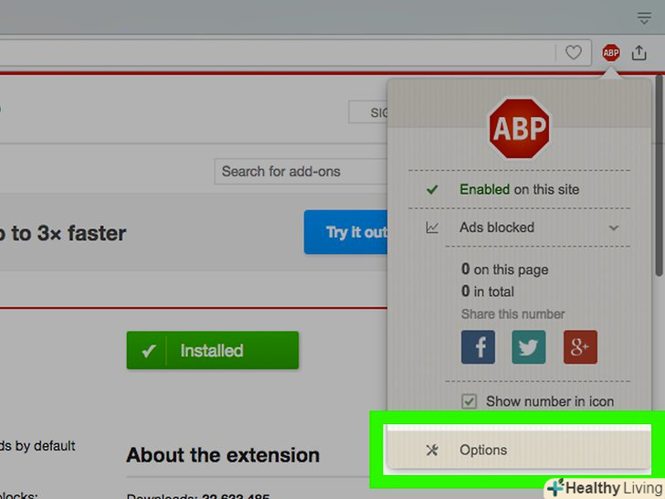 Натисніть на значок блокувальника реклами і виберіть "параметри", щоб змінити налаштування.відкриється нова вкладка, на якій можна налаштувати блокувальник реклами.- Деякі розширення, наприклад, AdBlock, не блокують певну рекламу. , Якщо ви хочете блокувати всі рекламні оголошення, можна відповідним чином змінити налаштування розширення