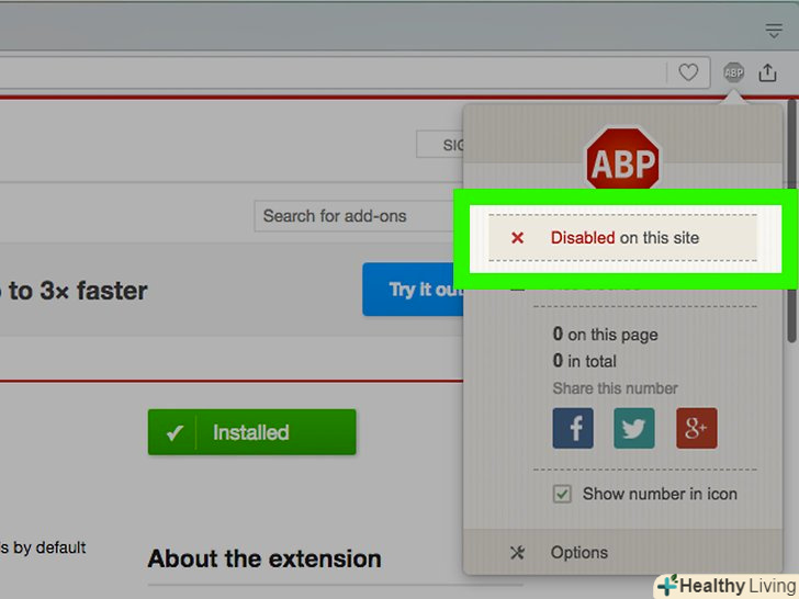 Дозвольте відображати рекламу на певних сайтах. Функціонування багатьох сайтів залежить від реклами. Можливо, ви захочете відключити блокування реклами на певних сайтах, щоб їх власники могли отримувати дохід від реклами.- Натисніть на значок блокувальника реклами і виберіть "відключити на цій сторінці". В цьому випадку блокувальник реклами буде працювати на всіх сайтах, крім тих, на яких ви відключили його.