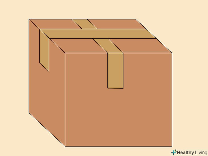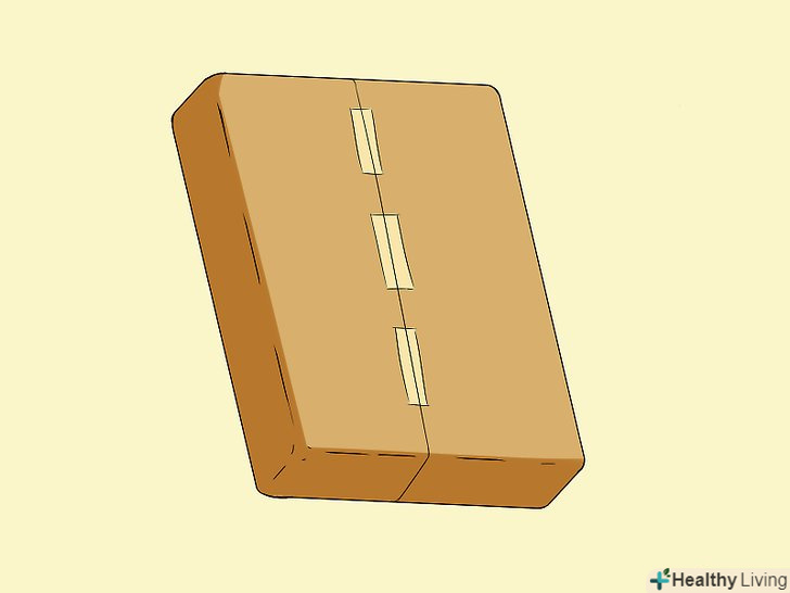 Ретельно заклейте коробку. закрийте коробку, опустивши клапани рівно, не переплітаючи їх разом. Приклейте один край пакувальної стрічки до середини коробки з одного боку, а інший край простягніть через кришку і приклейте з іншого. Аналогічні дії повторіть з другим шматком пакувальної стрічки, обклеївши коробку навхрест. Заклейте всі клапани і отвори пакувальною стрічкою, щоб вони ні за що не зачепилися і не порвали коробку. [6]- Для додаткового захисту заклейте пакувальною стрічкою всі відкриті шви коробки, але не переборщуйте з кількістю стрічки. Одержувачу навряд чи сподобається відрізати метрові шматки пакувальної стрічки, щоб дістатися до книги.