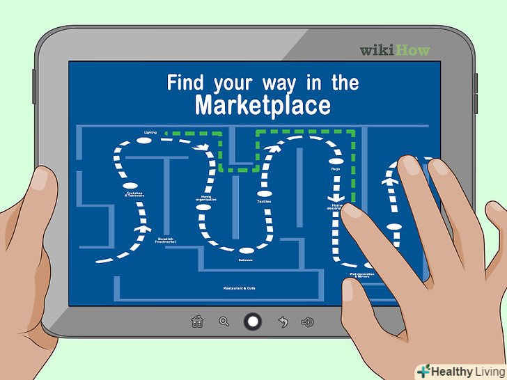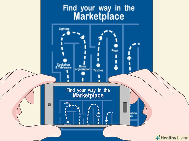 Сфотографуйте карту. для того щоб ефективно здійснювати покупки, вам потрібно знати, куди ви йдете. Як тільки ви побачите синю карту будівлі, дістаньте телефон і сфотографуйте її.- Це особливо корисно, якщо ви намагаєтеся зробити всі покупки, поки ваші діти знаходяться в ігровій кімнаті в межах годинного ліміту.