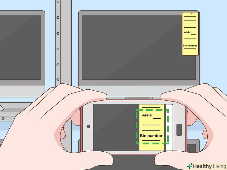 Фотографуйте Бірки. оскільки ви не будете брати товари під час прогулянки по магазину, гарною ідеєю буде фотографувати бирки кожного предмета, який ви плануєте придбати. На бирці вказані номер артикулу, а також ряд і місце стелажа, які вам знадобляться при пошуку товарів для покупки на складі самообслуговування. [14]- ІКЕА надає невеликі олівці і листочки для запису цих деталей. Якщо ви віддаєте перевагу вести облік товарів таким чином, не забудьте захопити ці матеріали біля входу.