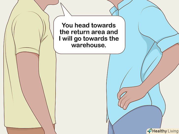 Розділіть завдання з приятелем. якщо ви будете дотримуватися принципу "розділяй і володарюй", вам не доведеться тягати великі предмети по будівлі, а також ви зможете швидше все купити. Це особливо корисно, якщо ви і купуєте нові речі, і хочете зробити повернення.- Попросіть друга або чоловіка/чоловіка, якого ви привели з собою, відправитися в зону повернення, в той час як ви підете в магазин, щоб забрати речі з бажаного виставкового залу. [12]