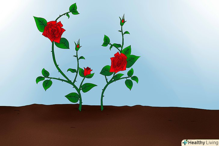 Помістіть троянди в землю на таку глибину, щоб листовий черешок був покритий землею, а сам лист знаходився над поверхнею грунту.