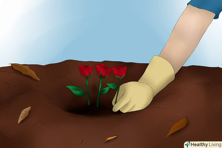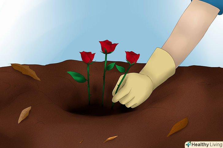Помістіть в ямку приблизно 3 троянди на відстані приблизно один дюйм один від одного.