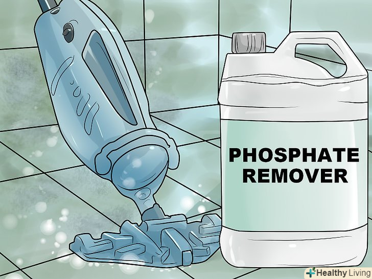 Видаліть фосфати. водорості харчуються різними присутніми у воді речовинами, особливо фосфатами. Вміст фосфатів в басейні можна виміряти за допомогою досить дешевого тестового набору. Якщо у воді присутні фосфати, використовуйте стандартний засіб для їх видалення, яке можна придбати в магазині товарів для басейнів. Після цього фосфат можна видалити протягом 1-2 днів за допомогою фільтра, автоматичного або ручного пилососа. Коли рівень фосфатів стане нормальним, проведіть шокове хлорування.- Серед фахівців немає єдиної думки щодо прийнятного рівня фосфатів. Ймовірно, досить низьким рівнем є 300 проміле, якщо у вас немає постійних проблем з водоростями. [12]
