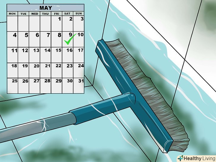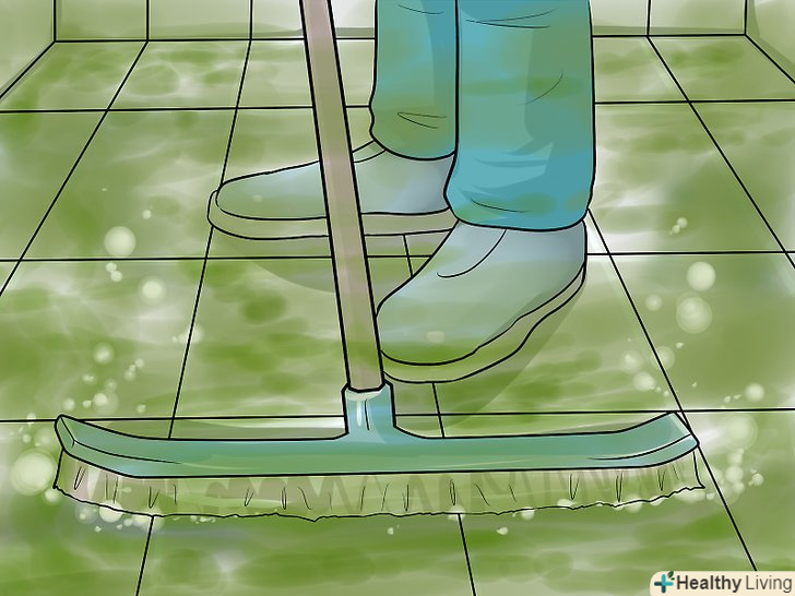 Почистіть щіткою стіни і дно басейну. як слід потріть поверхню басейну, щоб видалити якомога більше водоростей. Це зменшить час, необхідний для знищення водоростей. Приділіть особливу увагу сходам, стінкам позаду сходів і іншим закутків, де часто збираються водорості.- Переконайтеся, що щітка підходить для вашого басейну. Бетон добре чистити дротяними щітками, а для вінілових басейнів краще використовувати нейлонові щітки. [1]