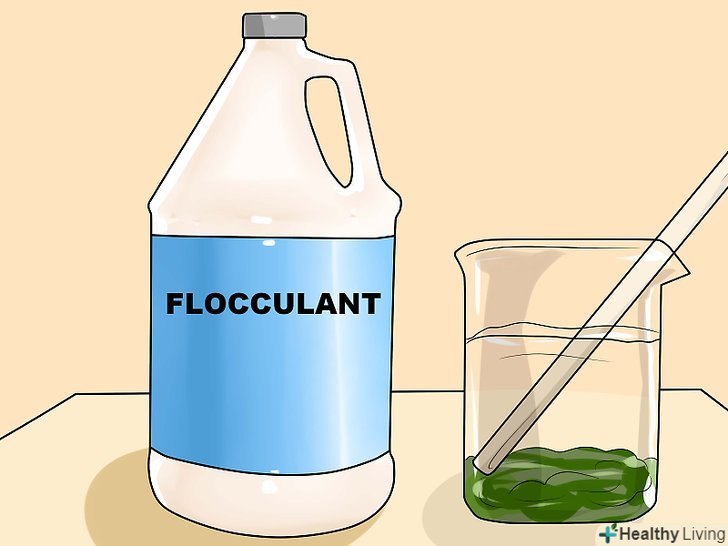 Зберіть водорості за допомогою флокулянта. під впливом флокулянта або коагулянта водорості злипаються, що дозволяє видалити їх за допомогою пилососа. Хоча ця непроста робота може розтягнутися на цілий день, в результаті ви очистите басейн. [9] це найбільш швидкий спосіб очистити басейн, однак після такої обробки в ньому небезпечно купатися. Якщо в басейні з'явилися водорості, в ньому можуть розмножуватися віруси і бактерії. Після цього проведіть шокове хлорування, щоб дезінфікувати воду, і не купайтеся в басейні до тих пір, поки не відновиться нормальний рівень хлору і pH.