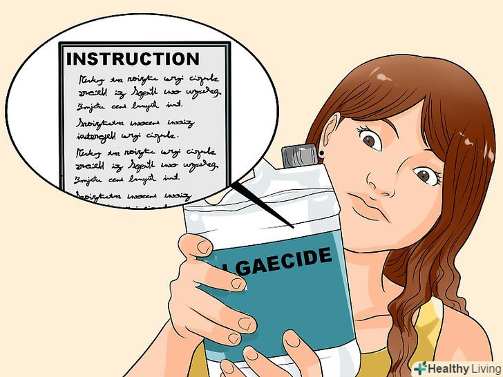 Обробіть воду альгіцидом. альгіцид напевно знищить водорості, однак побічні ефекти і витрати можуть переважити переваги такої обробки. При цьому слід враховувати наступні фактори: [10] [11]- Деякі альгіциди недостатньо сильні для того, щоб позбутися від цвітіння, особливо якщо в басейні є чорні водорості. Попросіть співробітника магазину допомогти вам з вибором засобу або пошукайте альгіцид хоча б з 30% активних інгредієнтів.