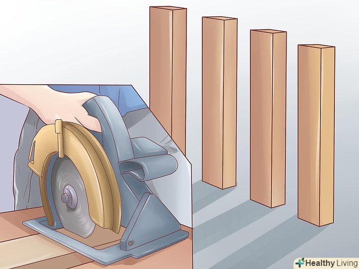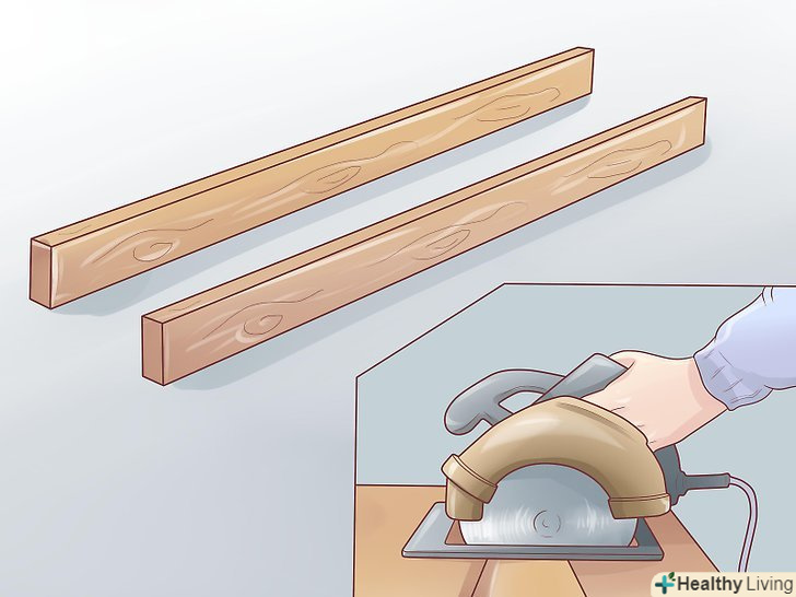 Обріжте дві рейки так, щоб їх довжина перекривала ширину несучої рами(каркас) на 7,5 см з кожного боку ніжок. це буде підставою. З них потрібно зняти невеликий шар по центру, з нижньої частини кожного підстави, щоб воно відповідало рівню.