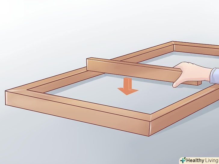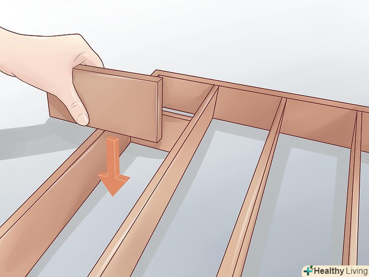 Тепер ви можете встановити ще одне довге ребро жорсткості точно так же, як це описано вище. встановіть короткі ребра жорсткості. Як і в попередньому випадку використовуйте клей, шурупи або скоби. Для міцності конструкції промажте клеєм місця з'єднання коротких і довгих ребер жорсткості.- Ваш останній ряд коротких ребер жорсткості не повинен прилягати занадто щільно, щоб не вплинути на розміри каркаса верстата. Перевірте розміри каркаса ще раз. Останній ряд не повинен міняти розміри каркаса.