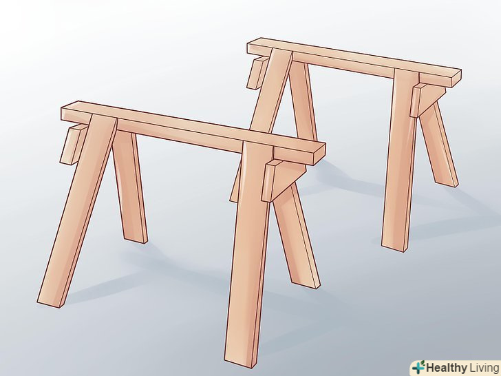 Знайдіть рівну поверхню. це перший крок. Встановіть козли. Зробіть це так, щоб верхня частина козлів була на одному рівні. Крім того, встановіть їх так, щоб на них могла розташовуватися верхня частина верстата розміром 2х4.