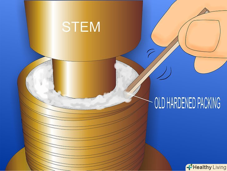 Зніміть ущільнювальну гайку розвідним ключем. ущільнюючий ковпачок знаходиться трохи нижче ручки. За гайкою і прокладкою знаходиться ущільнювальний матеріал.