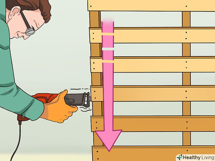 Продовжуйте пиляти одну сторону вертикальної дошки, поки всі горизонтальні рейки не послабляться і звільняться від цвяхів.