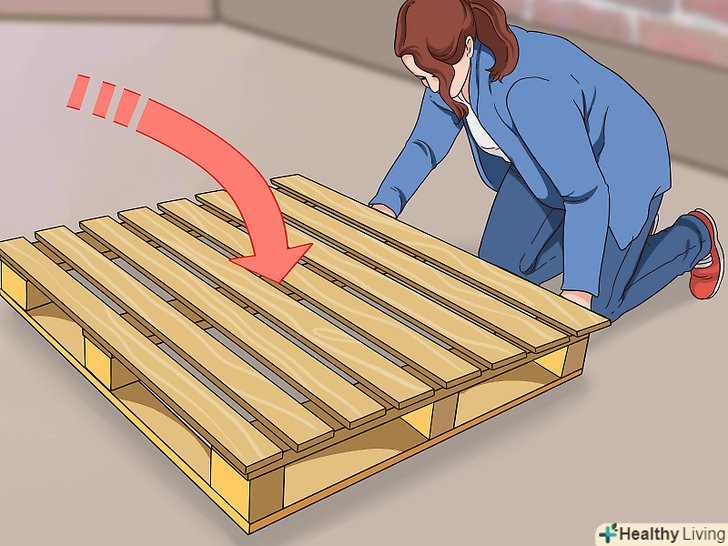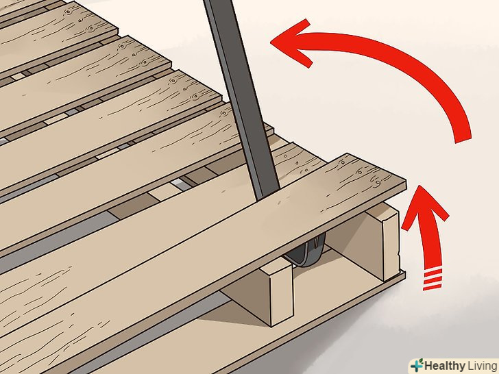 Перейдіть до іншої вертикальної планки і повторіть процес на іншій стороні піддону. горизонтальні дошки можуть почати відвалюватися. Попросіть друга прибирати їх, якщо вони створюють незручності.