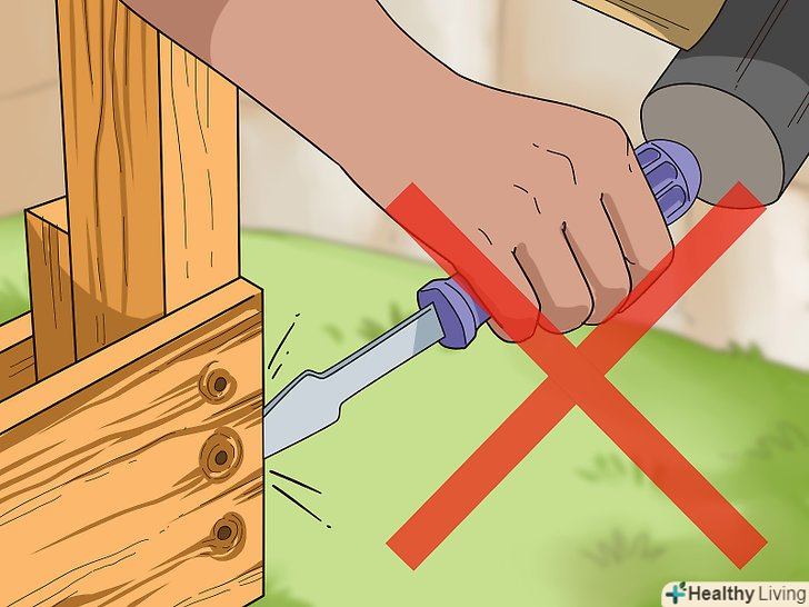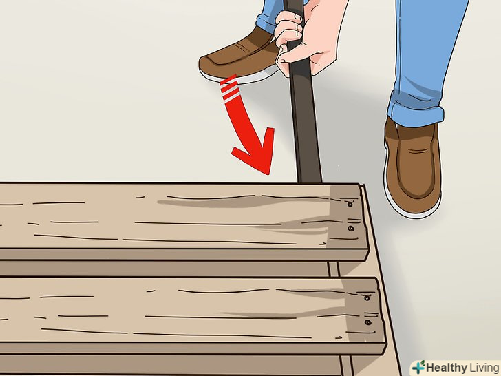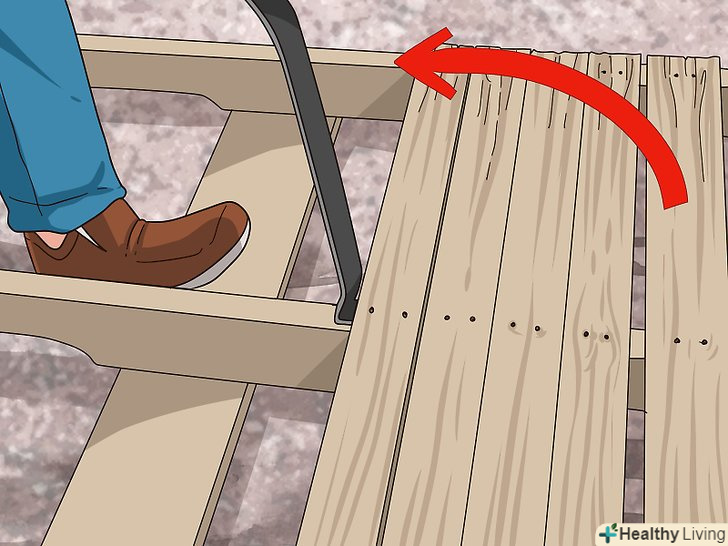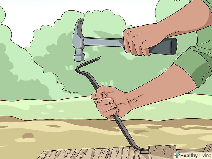 Переверніть дошку і за допомогою молотка вибийте цвяхи. утилізуйте цвяхи, не залишайте їх на землі.