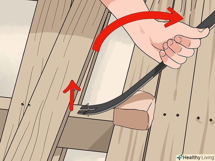 Повторіть подібні дії з кожною дошкою, розхитуючи цвяхи в кожній частині, перед тим як висмикнути всю дошку. весь процес може зайняти близько 30 хвилин або більше і зажадає достатніх фізичних зусиль.