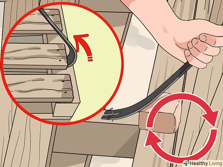 Потягніть монтування назад, щоб відігнути дошку і послабити кріплення. не намагайтеся повністю відігнути дошку, ви просто можете її зламати. Перемістіться на кілька сантиметрів в сторону і повторіть рух, щоб послабити наступний цвях.- Відгинаючи занадто багато і занадто швидко, монтуванням ви переломите дошку. Ви повинні рухатися повільно і плавно розгойдувати монтування навколо цвяха.