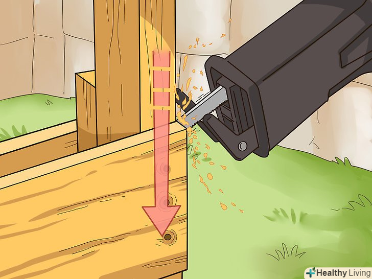 Увімкніть шабельну пилу. Наведіть пилу між двома дошками і пройдіться їй вниз або в сторону плавним рухом. Ви розріжете гвинтовий цвях, який скріплює дві дошки. [3]