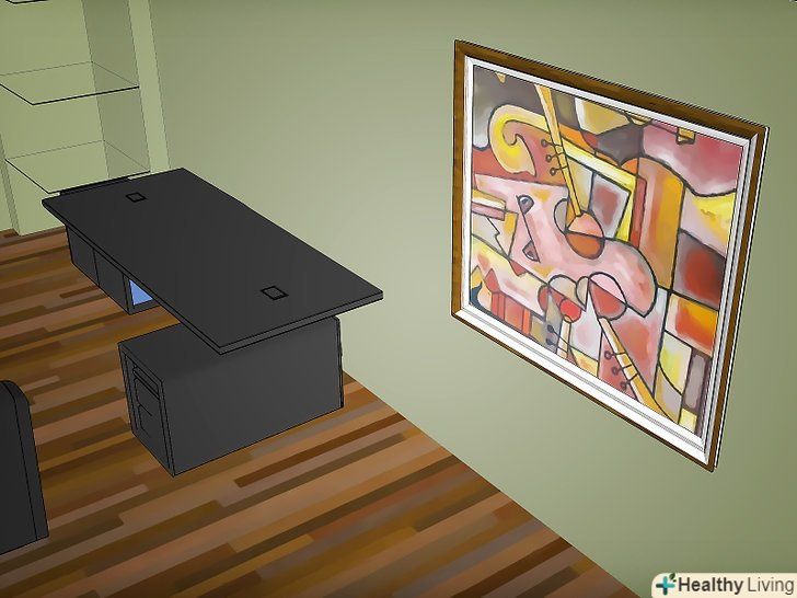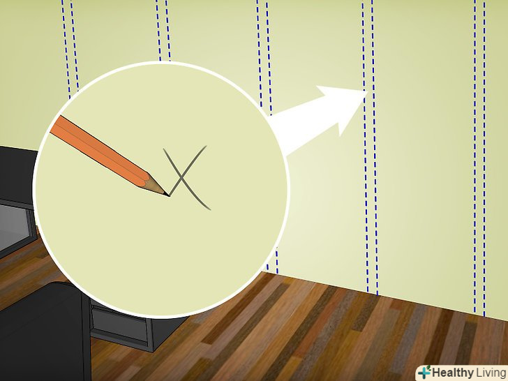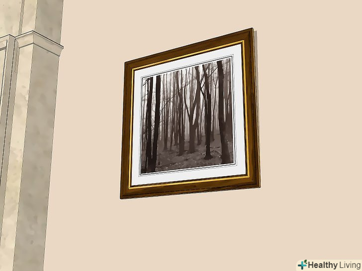 Виберіть місце для підвішування картини. визначте, де проходить каркас стіни, щоб повісити важку картину туди. [3] для не дуже важких картин можна використовувати майже будь-яке місце.- Відміряйте місце для вкручування шурупа за допомогою рулетки. Виміряйте довжину кріплення, потім відкладіть ту ж відстань на стіні.