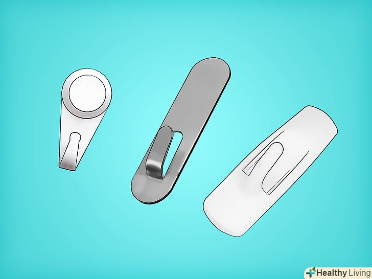 Виберіть самоклеючий гачок. найпростіший гачок підійде для підвішування легких картин, але в продажу можна зустріти всілякі форми і розміри. Звіртеся з упаковкою при покупці, щоб упевнитися в достатній надійності гачка.- Також переконайтеся, що форма кріплення картини (петля або шнур) підійде до цього гачка.