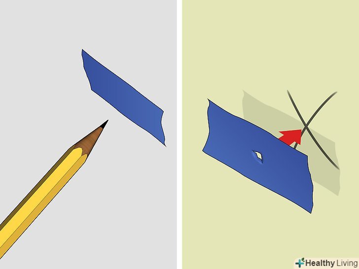 Приклейте малярський скотч поверх мітки. [4] відірвіть коротку смужку малярського скотча, зробіть в ній невеликий отвір кінчиком олівця. Потім приклейте смужку на стіну, щоб отвір знаходився прямо на позначці.- Малярський скотч допоможе краще утримувати свердло на місці, поки ви свердлите отвір.