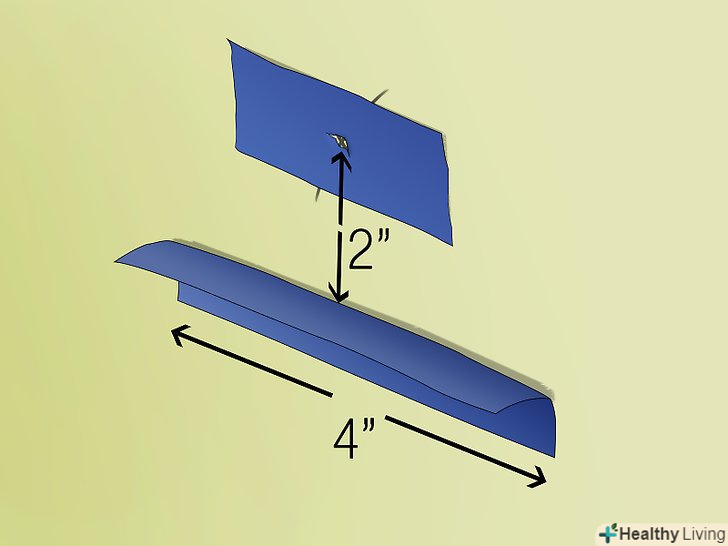 Помістіть ще один шматочок малярського скотча під отвір. відірвіть смужку скотча достовірніше, складіть її уздовж (клейким шаром назовні). Приклейте цю смужку до стіни під позначкою.- Друга половина цієї смужки повинна бути приблизно перпендикулярна стіні, клейким шаром вгору. Це робиться для того, щоб на підлогу падало менше гіпсової крихти і пилу під час свердління. Взагалі кажучи, це необов'язково, але може заощадити багато роботи після.